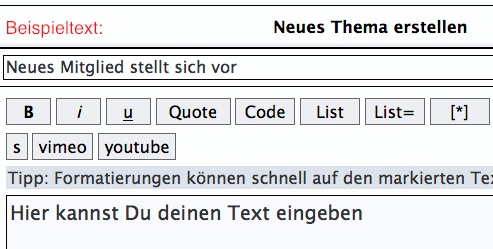 Im Editierfeld darunter, schreibst Du den Text deiner Vorstellung.