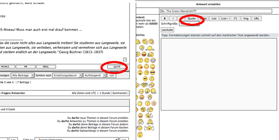 peppino hat geschrieben: wenn du, @warzo mir verrätst, wie du inclusive namen quotest, dann sag ich dir auch, wie man richtig youtubed...  . hab ich nämlich vom chef persönlich gelernt, als das mit den fragen hier noch funtioniert hat! und bevor wir hier wieder sms-niveau erreichen fange ich einfach an... du darfst zwischen diese youtubedinger nur den code 3OkIUZmXHeU setzen. grußp. Danke für den Youtubehinweis! Namen quoten? Ich weiß gar nicht wie das geht. Ich lasse einfach die Steuerzeichen stehen, zum Beispiel [quote="dr mabuse"] TEXT [quote="dr mabuse"] und schon funkt's. Hoffentlich habe ich nun mit diesen Steuerzeichen nicht den Forumsserver zum Absturz gebracht; wäre schade. LG warzo PS SMS-Niveau! Muss man auch erst mal drauf kommen ...