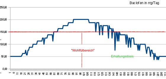 Aktuelle Baclofen-Dosis: 12,5, 12,5, 12,5 12,5 mg im Abstand von 4 Stunden = 50 mg/Tag,