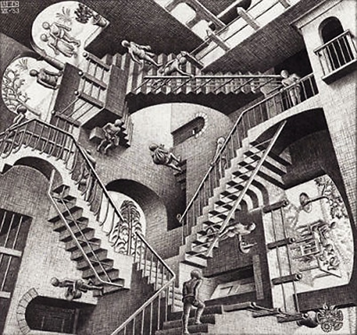 M.C. Escher nannte dieses Bild nicht ohne Grund „Relativität“.
