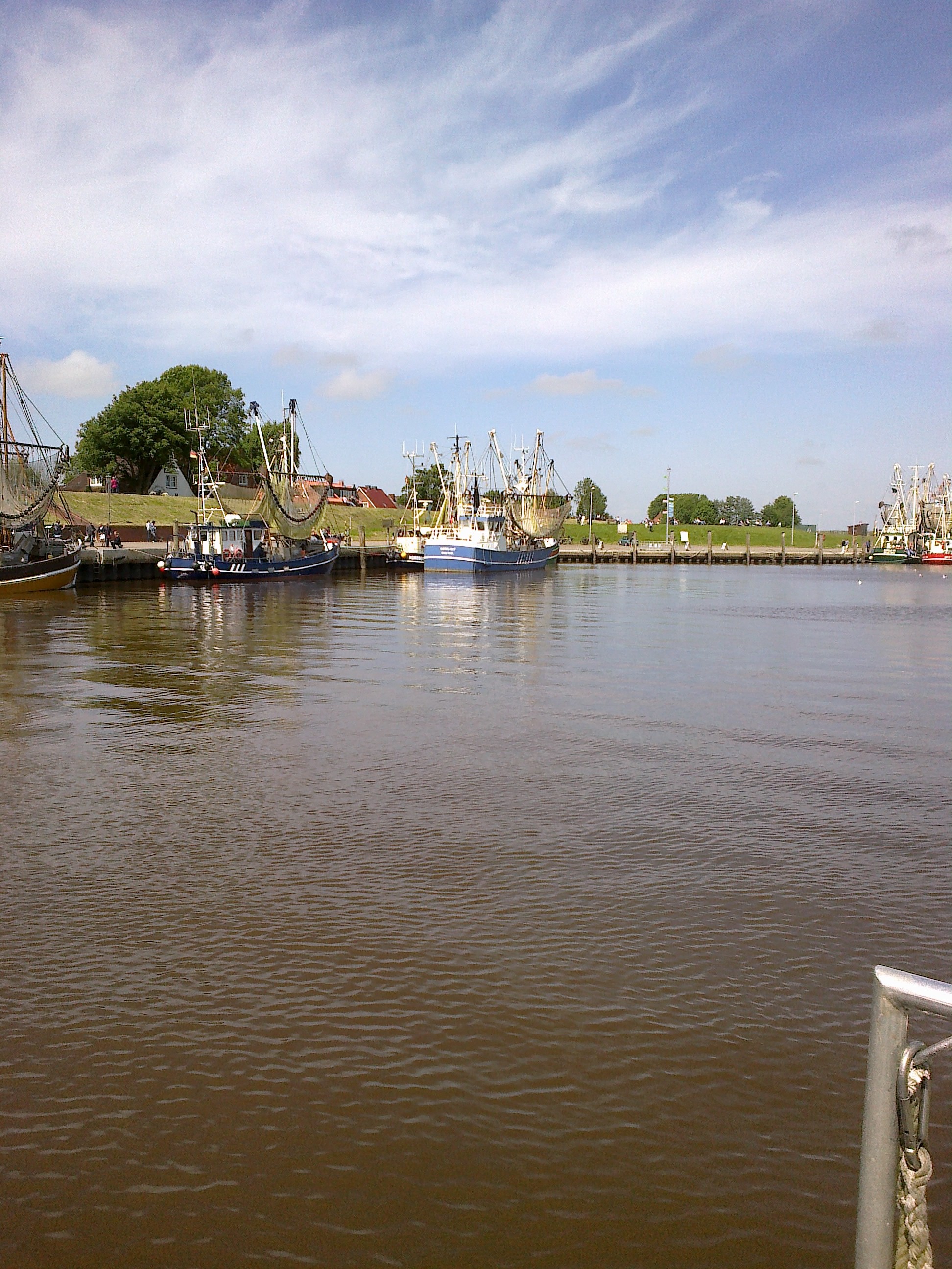 hy, Nordlicht ! ein Foto aus Greetsiel : im Hafen liegt nach mancher hoher Fahrt ... ruhig im Hafen : der Kutter : Nordlicht ;ganz rechts ...- leider nicht zu deutlich, aber deutlich : immer noch auf dem richtigen Kurs ...