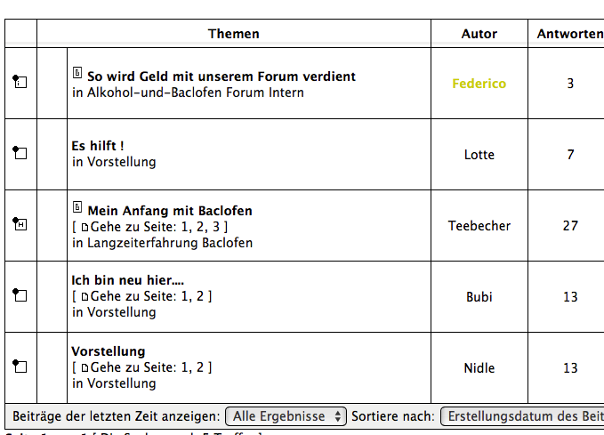 Hallo Lotte, das Quadrat wird grau, wenn Du oben über der Foren-Übersicht auf „Aktive Themen“ klickst. Gleiches gilt für „Ungelesene Beiträge“ rechts oben. Für Newbies ist dann natürlich alles grau, wer nicht alles lesen möchte, klickt auf „Beiträge als gelesen markieren“. Der Punkt im Quadrat? Ganz ehrlich ..., keine Ahnung. Zu „Schwaches Weib“ habe ich als Mann keine maßgebliche Meinung wenn es Alkohol betrifft. Irgendwie sind wir da alle gleich  schwach. Sozusagen gleichberechtigt gelebte Praxis Das Gute im Schlechten – Baclofen wirkt – ohne Rücksicht auf male/female. LG Federico