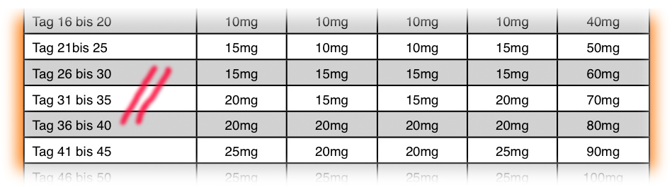 Wie schnell könnte/sollte ich auf 3x25mg / Tag hochgehen?